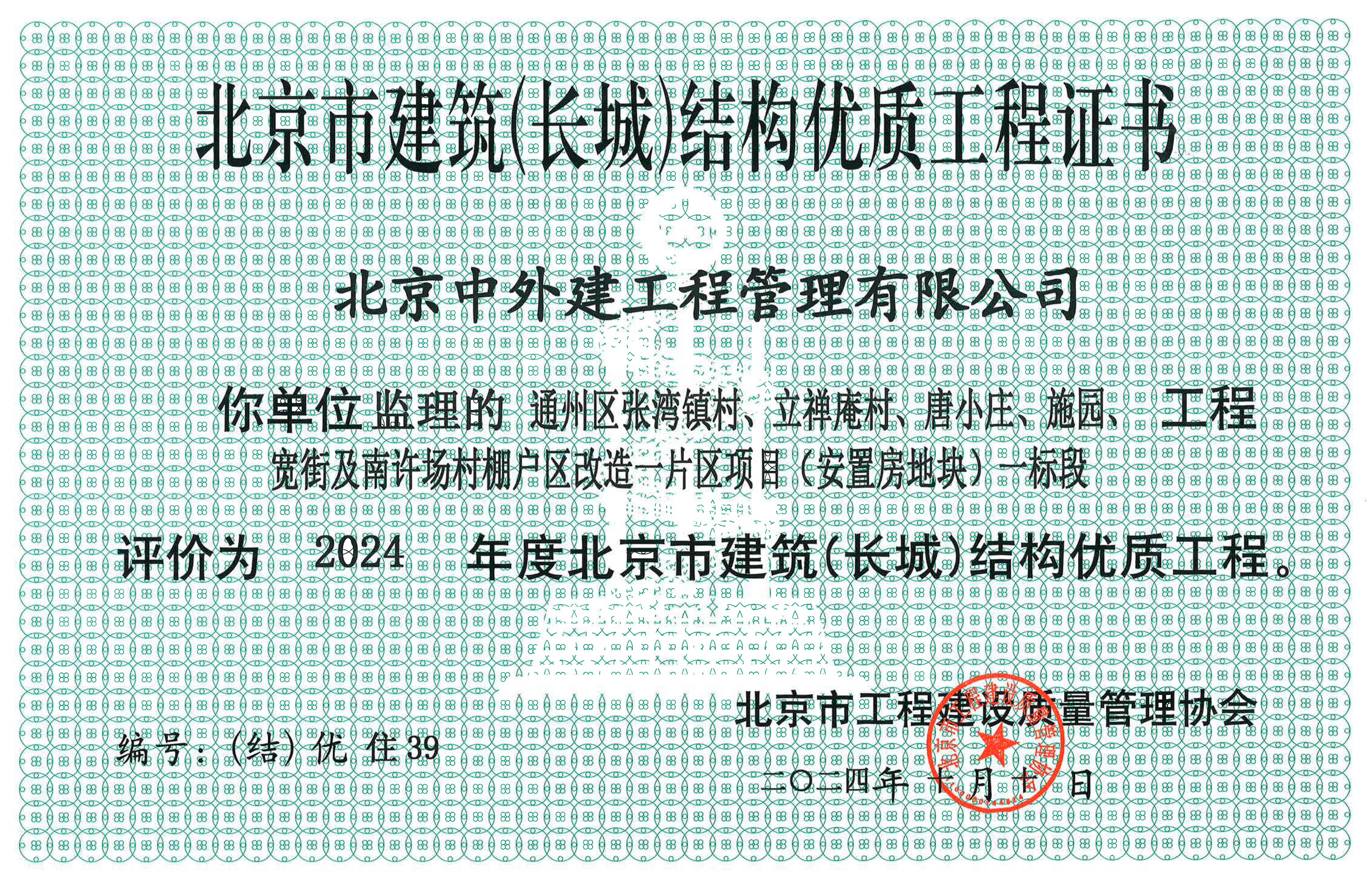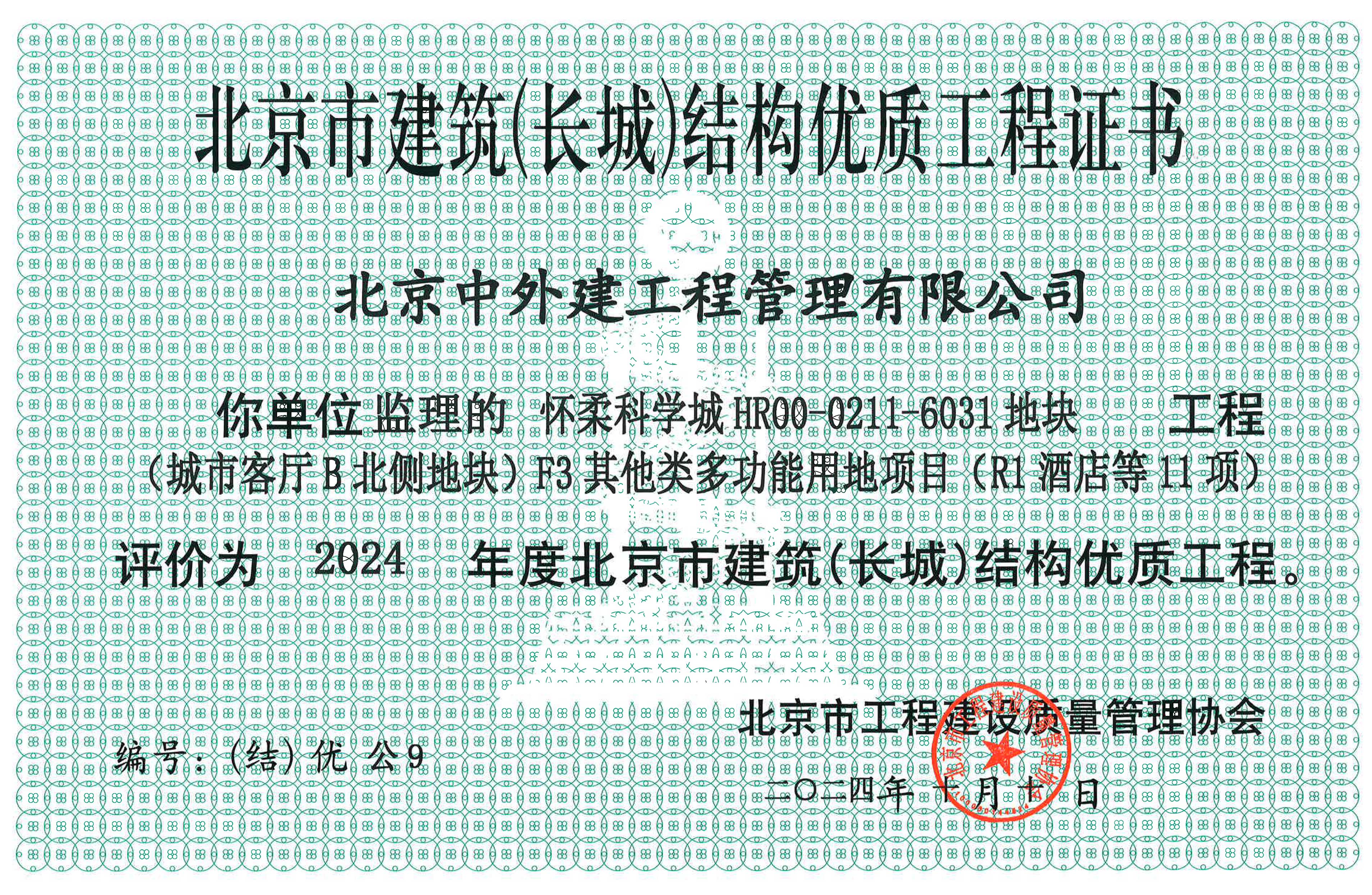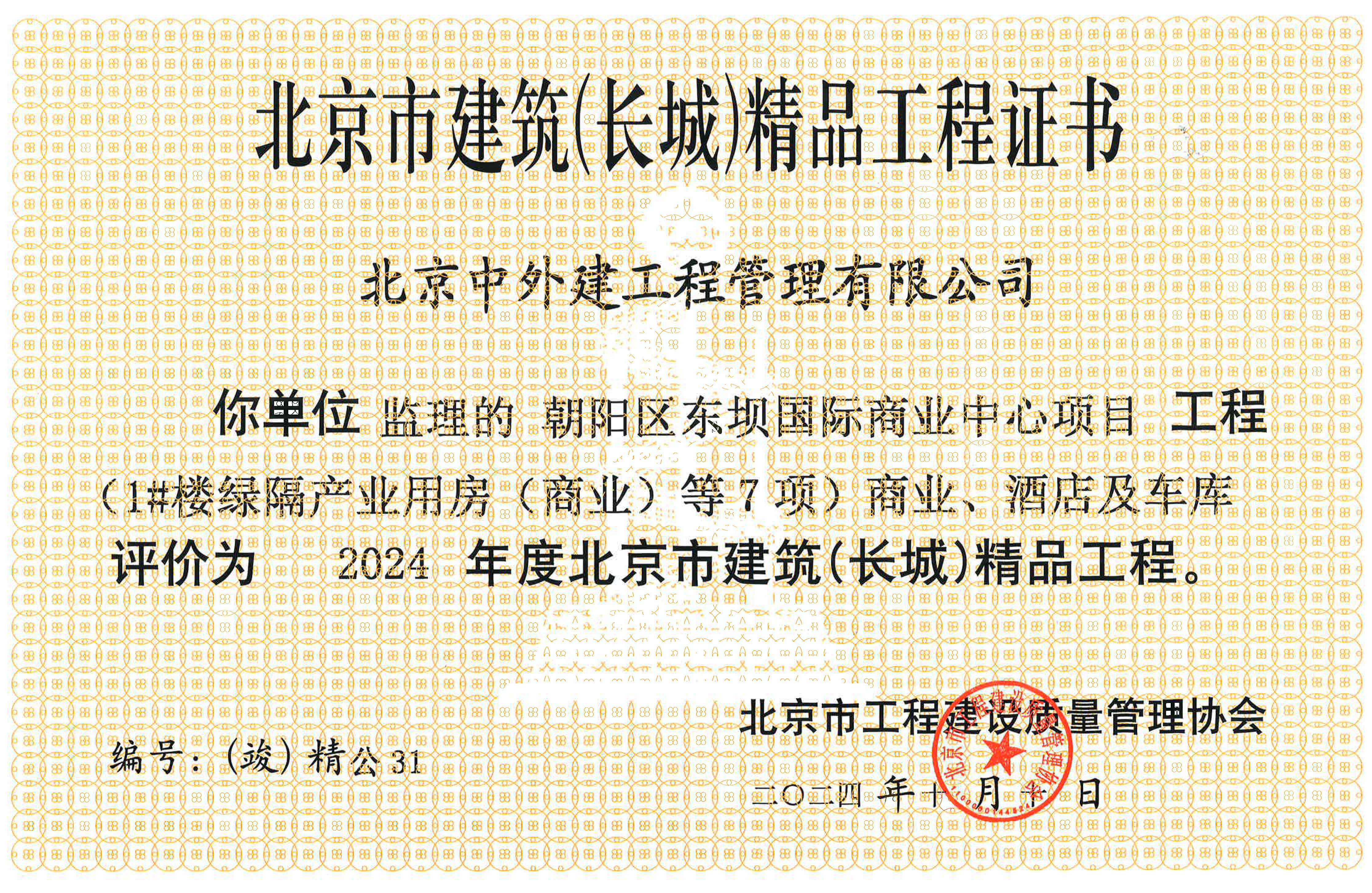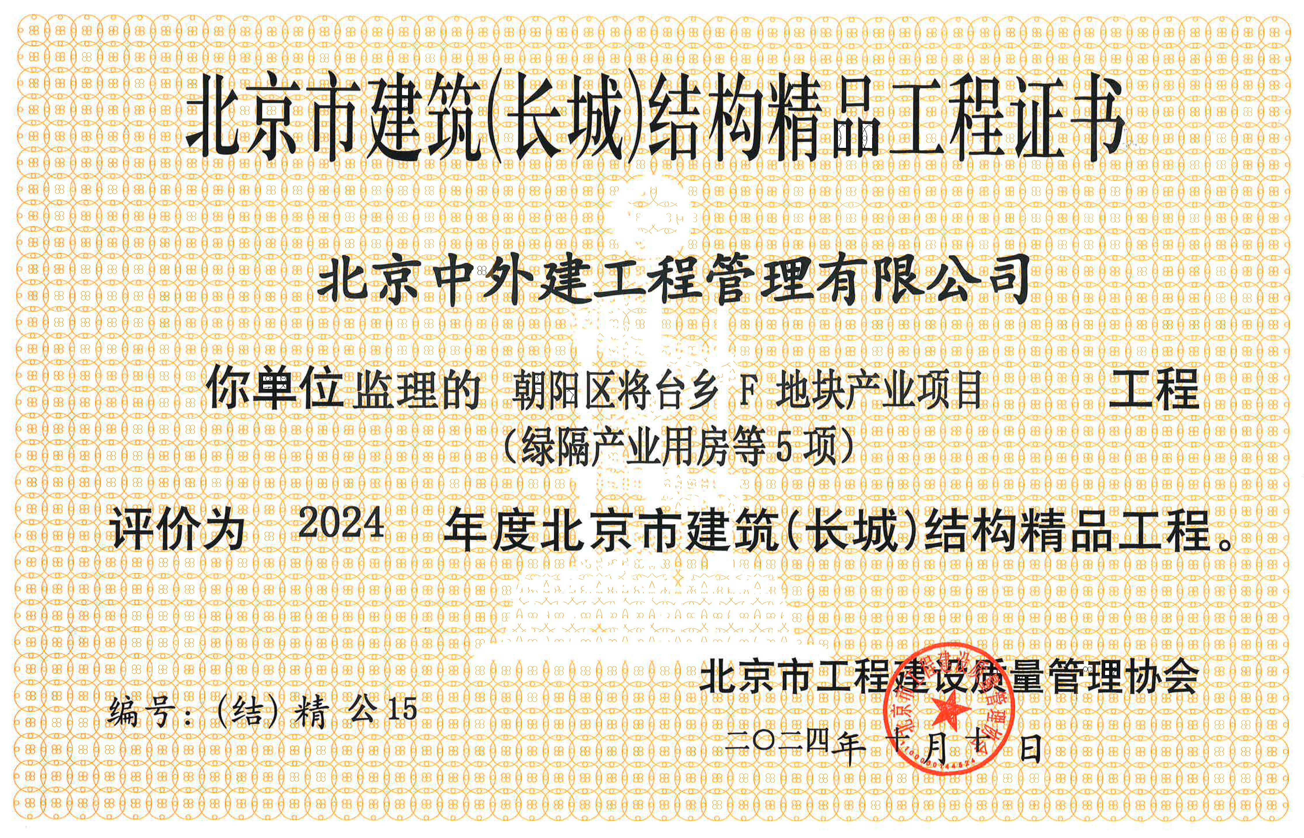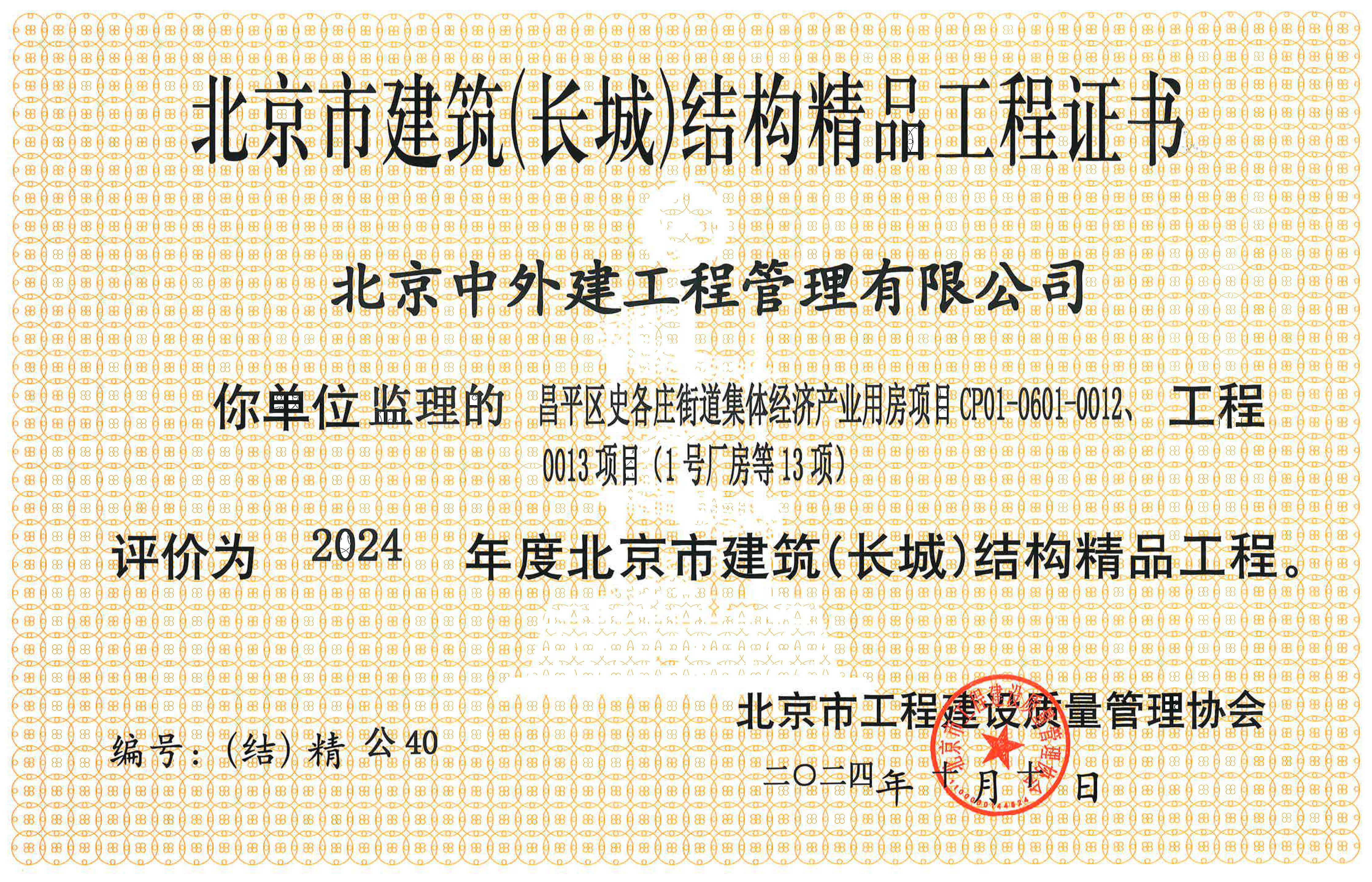 获得北京市长城杯质量奖项